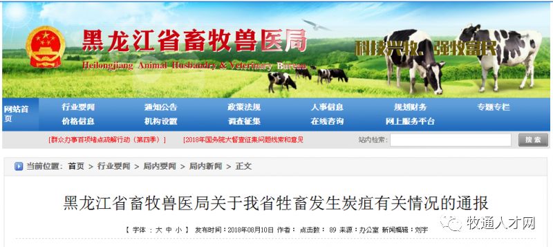 “继社会人一家被灭门之后,喜羊羊一家也没能逃脱毒手”。8月7号,黑龙江省佳木斯市桦南县动物疫病预防控制中心接到桦南种畜场报告,该场四分场石磊肉羊育肥场从七台河市茄子河区铁山乡四新村购买的肉羊出现死亡事件,经县相关部门会商确定为疑似羊炭疽病。截至目前,密切接触者已全部隔离观察,没有发病迹象。