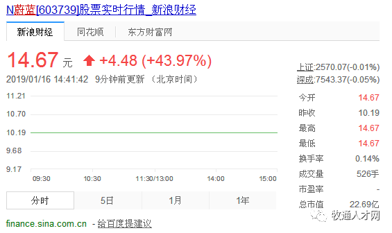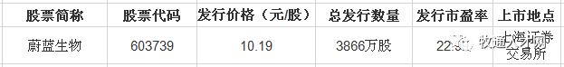 根据监管层安排,(今日)1月16日,蔚蓝生物在上海证券交易所上市,证券简称“蔚蓝生物”,股票代码“603739”。