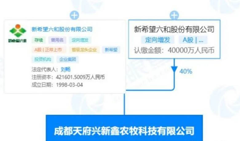 天眼查APP显示,近日,成都天府兴新鑫农牧科技有限公司成立,注册资本10亿元,经营范围包含牲畜饲养;家禽饲养;牲畜屠宰;食品销售;肥料生产等。