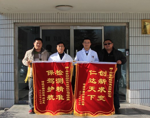2013年12月30日,诸城毛皮动物养殖户满怀感激之情向齐鲁动保生药公司送来锦旗。锦旗内容分别为“检测精准,保驾护航”、“创新求变,仁达天下”。这不仅体现了广大养殖户对公司的信任,同时也展现了公司技术服务团队的专业水平。生药公司秉承科学严谨、真诚可靠的服务宗旨,将“用齐鲁疫苗,享增值服务”的口号落到实处,为毛皮动物养殖业保驾护航。