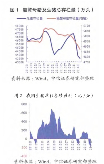 我们认为,能繁母猪存栏预计继续下降,2014年供应压力将小于2013年。需求低迷和恐慌性出栏(供需错配),导致猪价春节前超预期下跌,使供应压力在短期内集中释放(目前部分地区出售的生猪体重已经出现下降)。