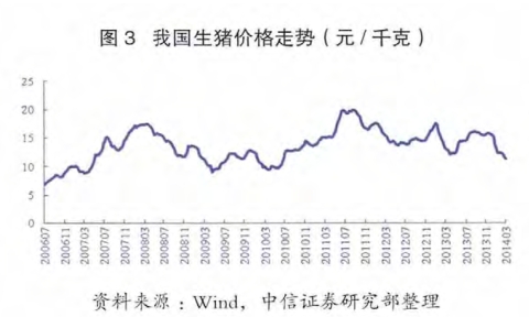 我们预计,4 月份开始生猪供应压力将缓解,猪价将震荡上涨并回归周期性轨道。2013-2014年猪价的走势可能会类似于2009-2010年猪价的走势,出现双底,当前猪价处于底部区间,且已跌破 11. 6元 /千克的前期低点,全年我们仍然认为均价将在15 元 /千克左右。