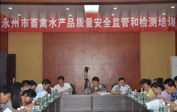 永州市饲料工业办主任兼畜禽水产品质量安全科科长王圣学就提高认识强责任、明确内容增底气、完善措施保安全等方面内容作了报告,并对今后监管工作进行详细安排,特别就药物残留、有毒有害物质残留及病死动物危害等方面予以重点强调,要求坚决防止非法添加“瘦肉精”、氯霉素、孔雀石绿、喹诺酮及和人用药等物质,打击病死动物流入市场行为,保障全市畜牧水产品质量安全。市畜牧水产局总畜牧兽医师成卫平对目前畜牧水产品质量安全职责、下步监管措施、今后工作要求等方面做了进一步强调。