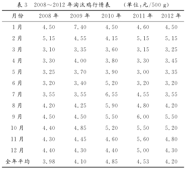 5.2 全年淘汰鸡的市场行情(2008~2012年)