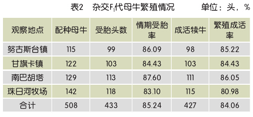 在观察期内,F1代牛生长发育良好,耐粗饲,不择食,适应性和抗病力强,没有发生过疾病,也没有发生过一、二类传染病。