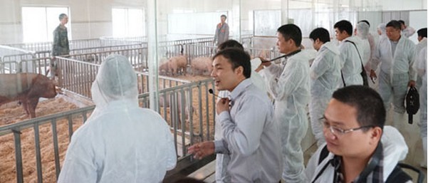 6月7日,100多位参加第八届全国猪人工授精关键技术研讨会的代表来到扬翔公司考察交流。上午9时许,代表们首先来到了位于贵港高速路出口附近的龙马种猪场和凤凰种猪场。在进入猪场前,按照公司的安排,他们都更换了服装和鞋子,经历了喷洒式的灭菌过程,然后透过玻璃观看种猪神态。代表们对于公司猪场严格的管理方式深为叹服。