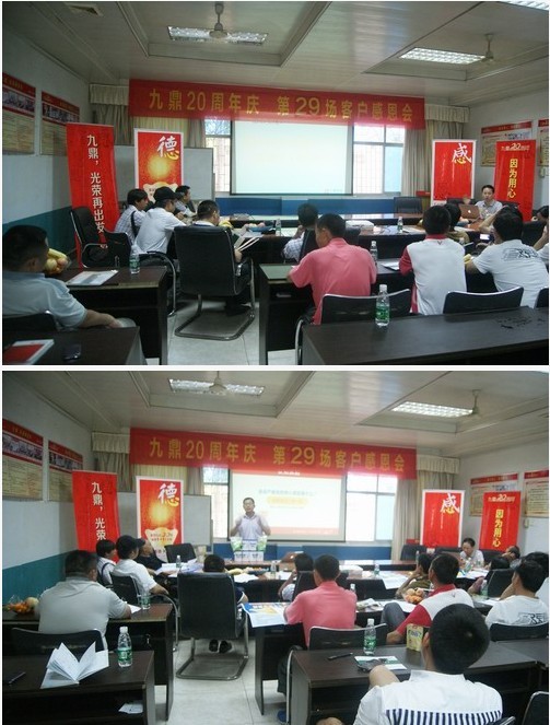 在随后召开的座谈会上,湖南九鼎营销副总刘石明向客户一行详细介绍了九鼎企业文化、发展历程、集团五五规划及20周年让利活动等;兽药公司总经理汪镇南为客户讲解《夏季常见猪病与预防措施》,帮助养殖户提高养殖技术,预防疾病,降低养殖成本,提高养殖效益。听完讲解,客户热情高昂,当场火热订货40多吨,三仙汤50余套。