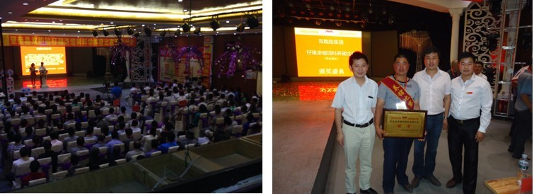6月16日,黑龙江省望奎幸福家园酒店,象过年一样呈现一派喜庆热闹,门前红旗招展、彩球高悬,来这里的人们脸上洋溢着节日的喜庆笑容。双胞胎集团黑吉省区仔猪料养猪比赛颁奖大会在这个大酒店召开。