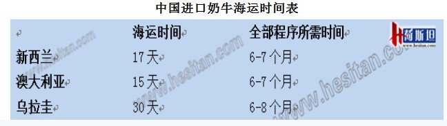 据荷斯坦记者了解,我国从新西兰、澳大利亚、乌拉圭三个国家进口奶牛所需的时间,全部程序平均需要6-7个月,海运时间,乌拉圭略长,乌拉圭与智利同处于南美,预计海运时间相当,约为30天。三国海运时间如下: