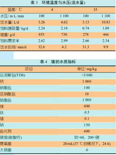 另外,对水质进行检测也非常有必要。一般情况下,养猪场会使用井水作猪的饮水;但是,当水源发生变化时,对其所含的成分是否符合饮水标准是必须要进行检测的(表4)。