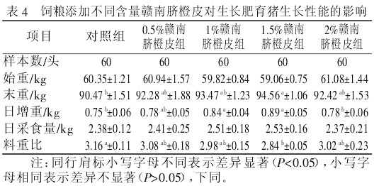 2.2赣南脐橙皮对生长肥育猪生长性能的影响