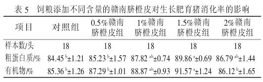 2.3赣南脐橙皮对生长肥育猪消化率的影响