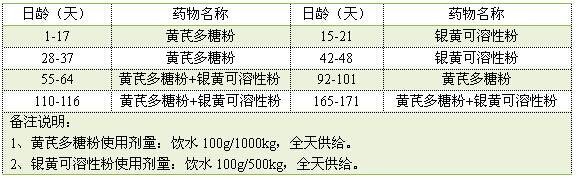 研究黄芪多糖粉和银黄可溶性粉联合使用对父母代种鸡育雏育成期生产性能的影响,提高成活率,提高疫苗免疫效果,净化支原体。
