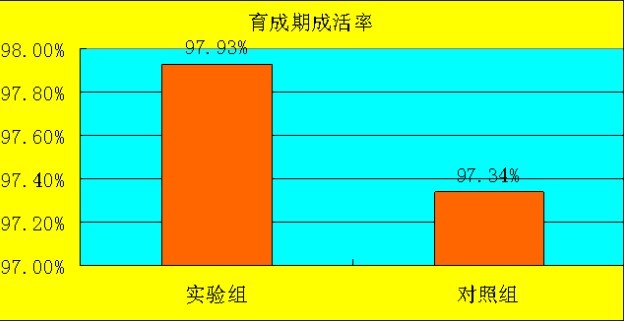 3、在整个育成阶段的成活率比对照组高0.6%。