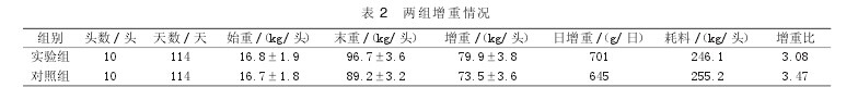 2.2.1日增重从表2可以看出,试验期内猪个体全期平均日增重,试验组701g比对照组645g多增重56g,提高增重8.7%,经检验,差异显著(P<0.05)。