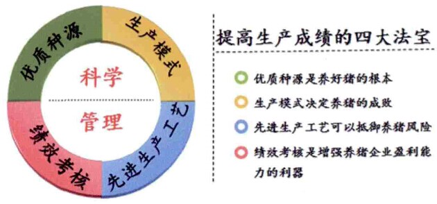 关于提高猪场的生产成绩,相信很多业者也有各自较为成功的做法。我们认为,影响猪场最终成绩的主要推动力包括 4 个方面: