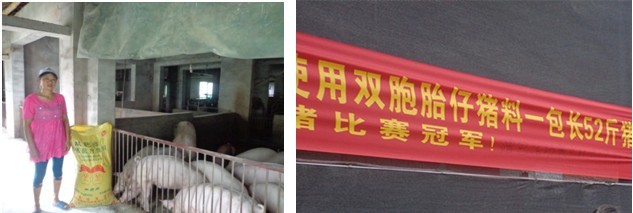 今年5月,双胞胎宜昌部举办仔猪料养猪比赛,施梅选了一窝10头猪参加了这一比赛。以一包仔猪料长52斤猪的纪录夺魁,创造出料肉比1.538、日增重2.275斤、价肉比3.365的成绩!