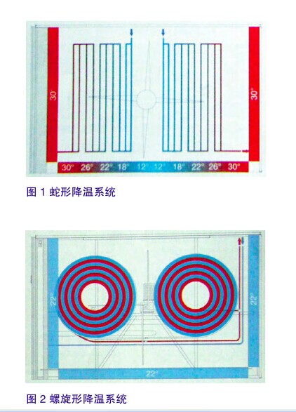 将不同温度的空气进行混合非常困难。随着温度的变化,螺旋形降温系统利用输入空气度和输出空气间的温差进行降温(图1和2)。这意味着孵化机内部的温度是不均一的。螺旋形降温系统通过冷热管相邻排列,并产生均匀的温度和冷气而可以对此进行补偿。这会直接影响通风的成本,因为采用这种方法时马达的功率不需要那么大。