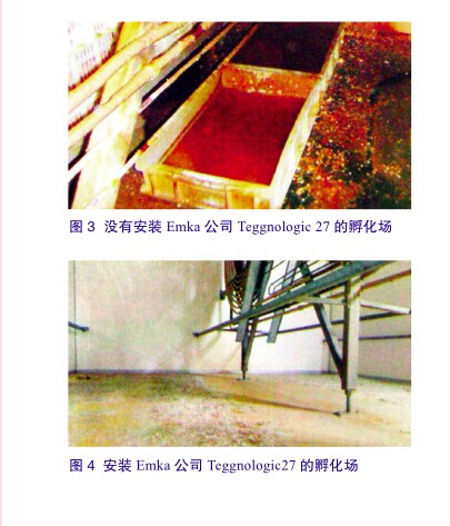 Emka公司的孵化机研发了一种高效、卫生、成本低且可以形成一个易于对内部环境清洁的降温系统,因此用该孵化机进行孵化,雏鸡产量高且1日龄死亡率低(图3、4)。