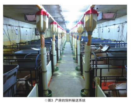 2.分娩前后的饲料投喂。分娩部门的饲料投喂采用的是半自动系统,即产房的喂料系统虽然也是通过微型绞龙输送饲料至料斗,但是需要人工开启料斗。采用人工投喂的重要原因是,每间产房的母猪虽然预产期基本上都是同一天的,但是实际生产日期会有较大的差别。而分娩前后各个时期的饲料投喂量是不一样的。