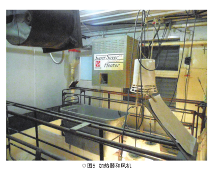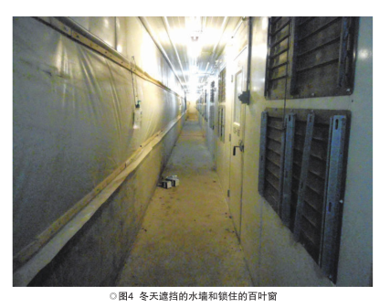 冬天时,要关闭百叶窗,走廊的水墙用塑胶纸遮盖,屋顶的通风口也关闭,尽量减少冷空气的进入。产房内采用燃气的空气加热装置,吹出热风,并开启大功率风扇保持室内空气流通,以保证室温达到要求。