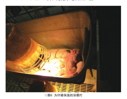3.仔猪的保温措施。通常情况下,母猪怕热,仔猪怕冷,仔猪要求的环境温度比母猪高。因为一旦仔猪感觉到冷,首先是会分解脂肪来产生热量,其次是冷到发抖,消耗大量能量,以致体重迅速下降。这对以称重的方式出售断奶仔猪的厂家来说,将是严重影响利润的因素。所以产房的室温控制在70.5℉(21.4℃),而集中断奶仔猪准备装车的“loadout”房间的温度一般保持在85℉(29.4℃)以上。为了保证新生仔猪的正常成长,尤其需要特殊保暖措施。因此,仔猪繁殖场会在产床的一侧加上橡胶垫或者保温垫,并且在每张产床的垫子上方适宜高度悬挂浴霸灯,以保证新生仔猪有足够温暖的生长环境。当仔猪生长到足够大的断奶前期时,会灭掉其中一盏灯,如果是夏天,会将两盏灯都灭掉。值得一提的是,在靠近门口的产床,会用塑胶纸遮挡侧方,用硬塑料板覆盖上方,以防止开门时迅速进入的冷空气影响仔猪的健康。