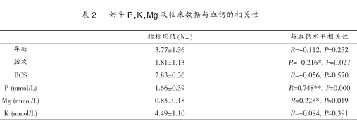 2.3奶牛血浆钙、磷与其他生化指标的相关性