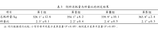 3.3对饲料消耗量及料蛋比的影响(结果见表3)