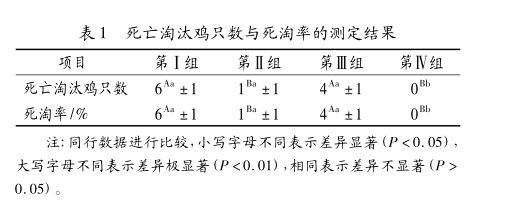 由表1可知,添加组的死亡淘汰鸡只数均低于对照组。第Ⅳ组无死亡,与第Ⅰ组(对照组)和第Ⅲ组比较差异极显著(P<0.01),与第Ⅱ组比较差异显著(P<0.05)。说明饲料中添加3%八味促卵散的第Ⅱ组和添加3%八味促卵散+多维的第Ⅳ组可以提高蛋鸡成活率,减少热应激死亡,并且添加3%八味促卵散+多维时效果较明显。