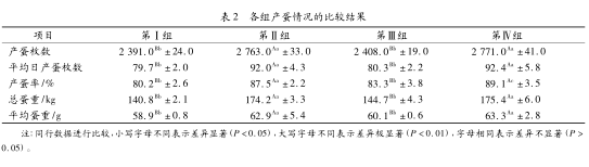 3.2对产蛋情况的影响(结果见表2)