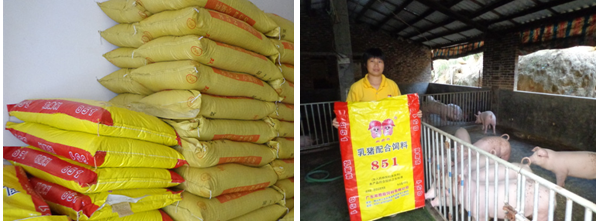 听说记者要为她照张相,她赶快拿过一个用完了饲料的双胞胎851乳猪料的包装袋,两手将饲料袋展开,举在胸前,要求把这个造型拍下来。记者对此表示理解,因为吴婵的养猪比赛女状元,就是在双胞胎851乳猪料这个饲料上夺得的,情有独钟啊!