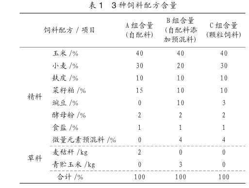 A组日粮为养殖户自配料,精料为玉米、小麦、菜籽粕等,草料为麦秸。