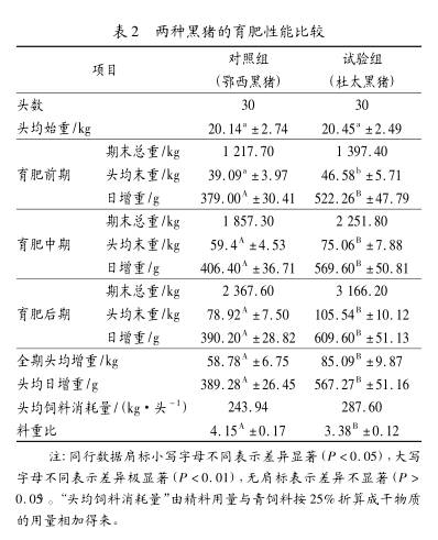 为了探索黑猪生产的最佳经济效益和社会效益,笔者进行了地方黑猪(鄂西黑猪)和杜太黑猪(杜洛克与太湖猪杂交)不同育肥猪的对比试验。